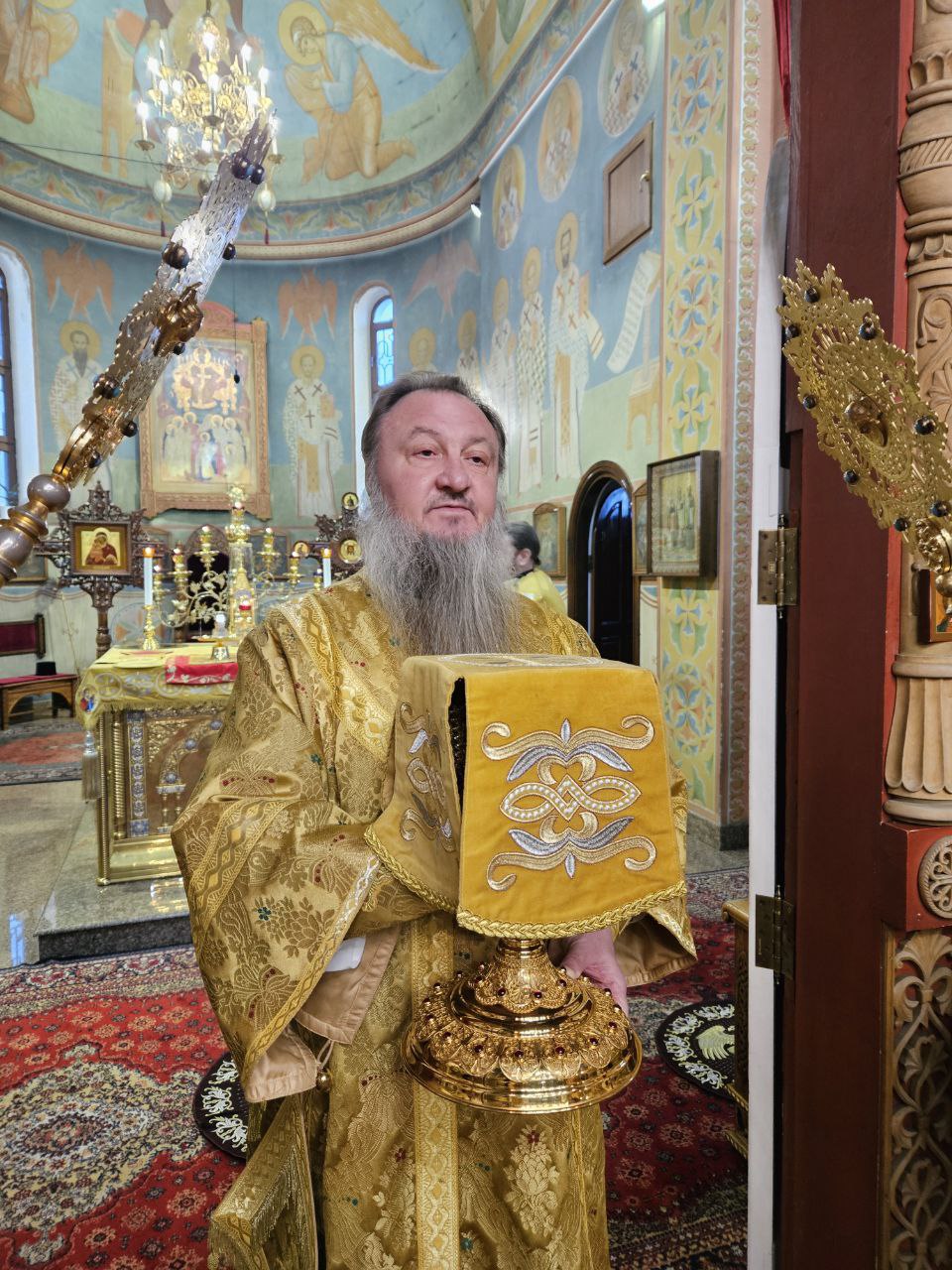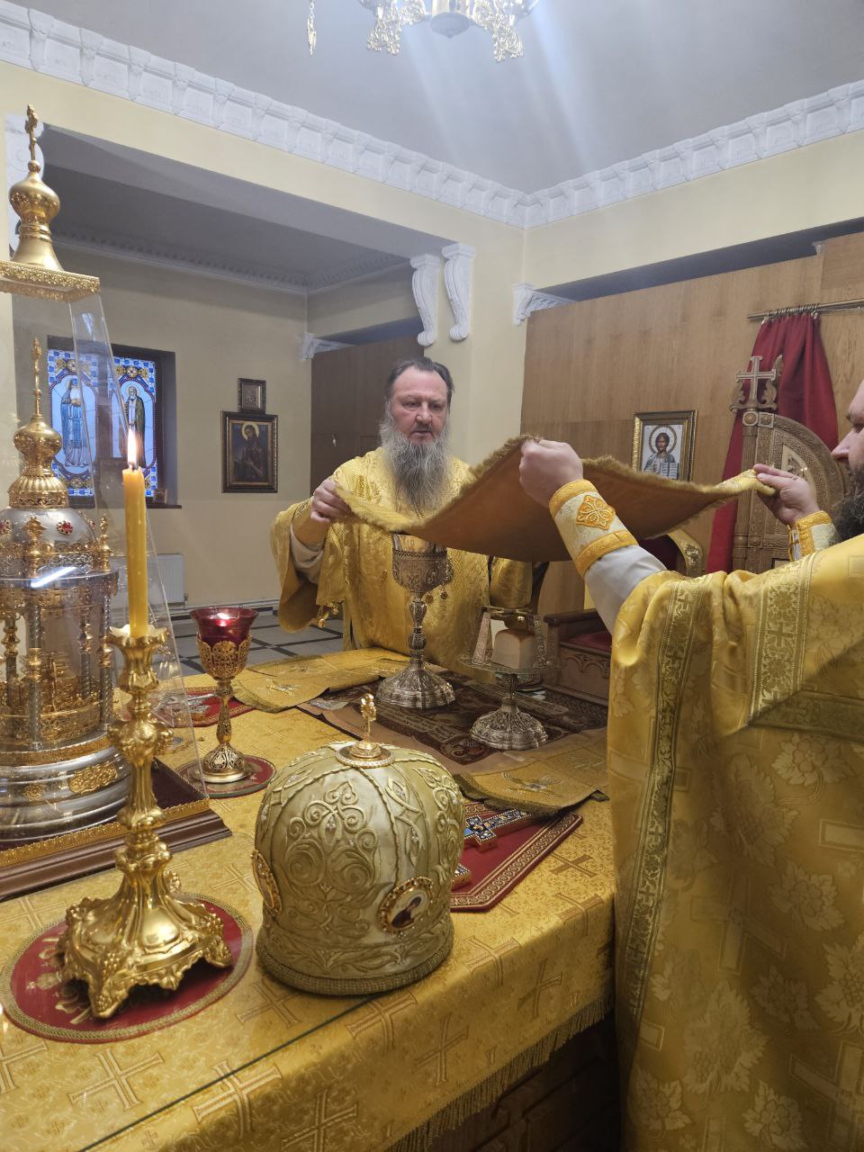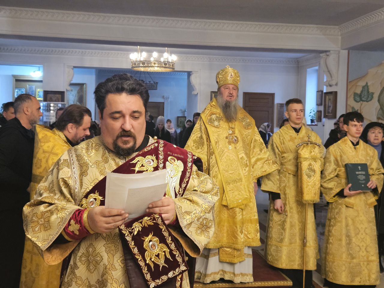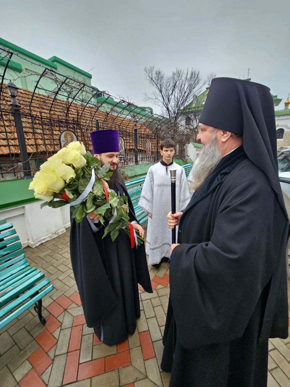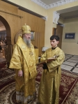Его Высокопреосвященству сослужили секретарь епархии протоиерей Иоанн Калмык, ключарь кафедрального собора Рождества Христова протоиерей Павел Кузменых, клирики Введенско-Пахомиева монастыря протоиерей Анатолий Каушан и иерей Сергий Грозовский, клирик кафедрального собора Рождества Христова протодиакон Сергий Афтени.