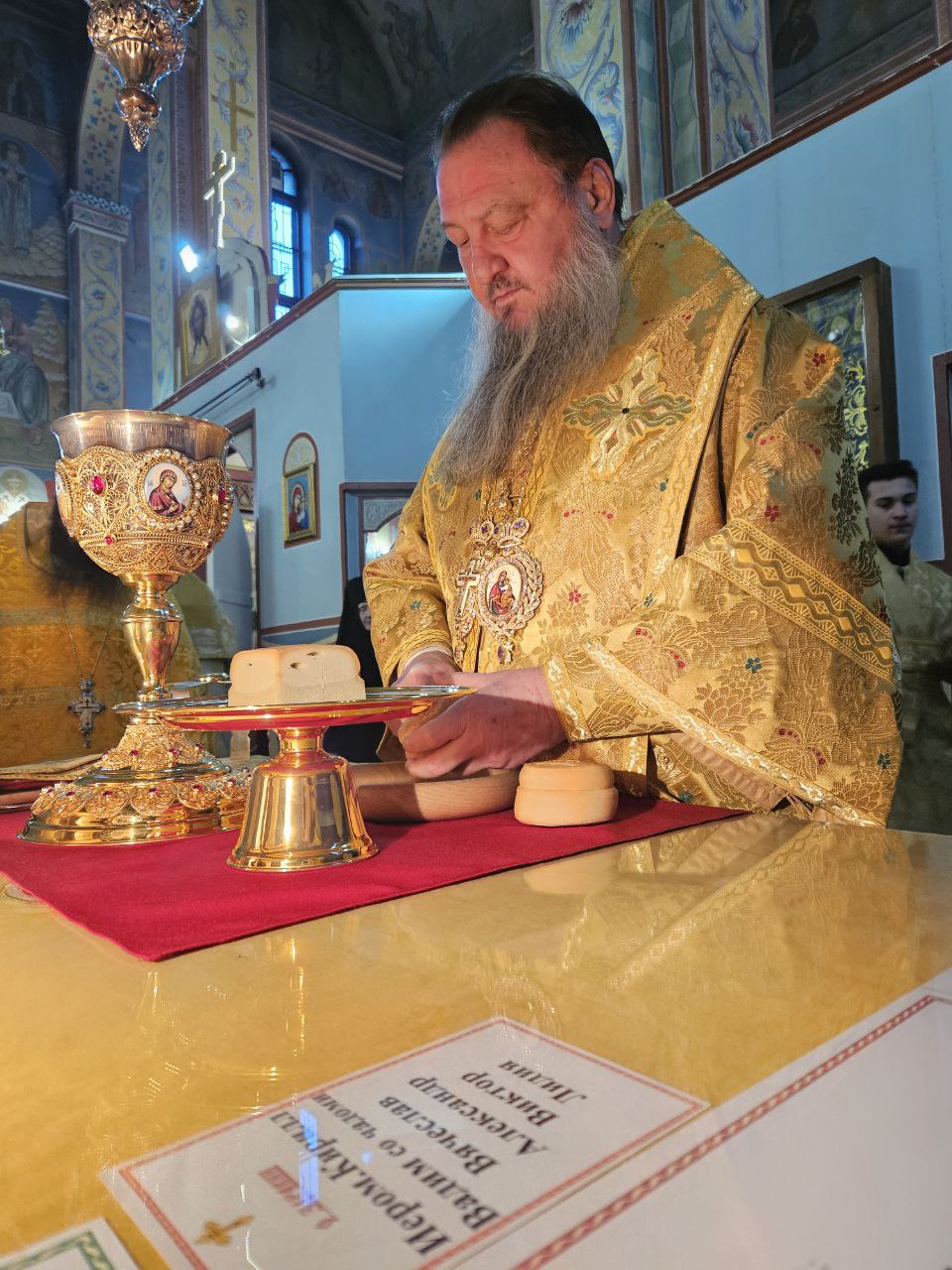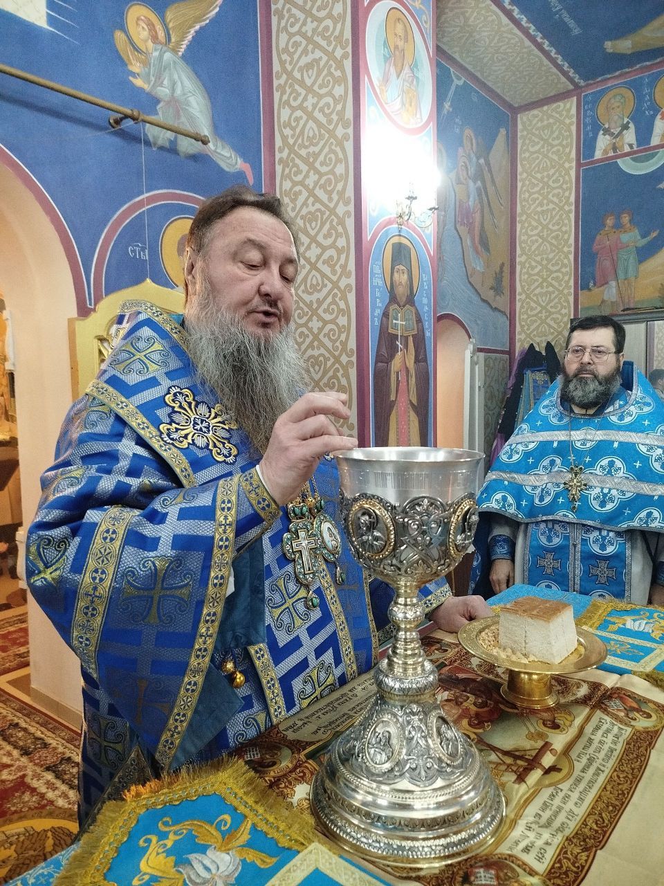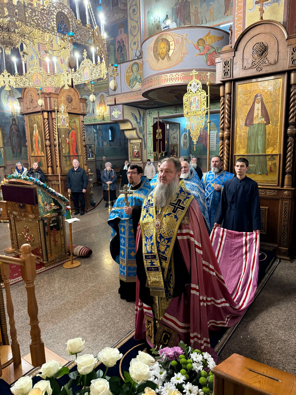 Его Высокопреосвященству сослужили ключарь и причт соборного храма. В этот день строгого поста в храмах совершаются положенные Уставом часы нáвечерия (также называемые великими или царскими – в память о том, что в византийскую эпоху эту службу неукоснительно посещали императоры) и великая вечерня с чтением 8-ти паремий праздника, а также Божественная литургия свт. Василия Великого.