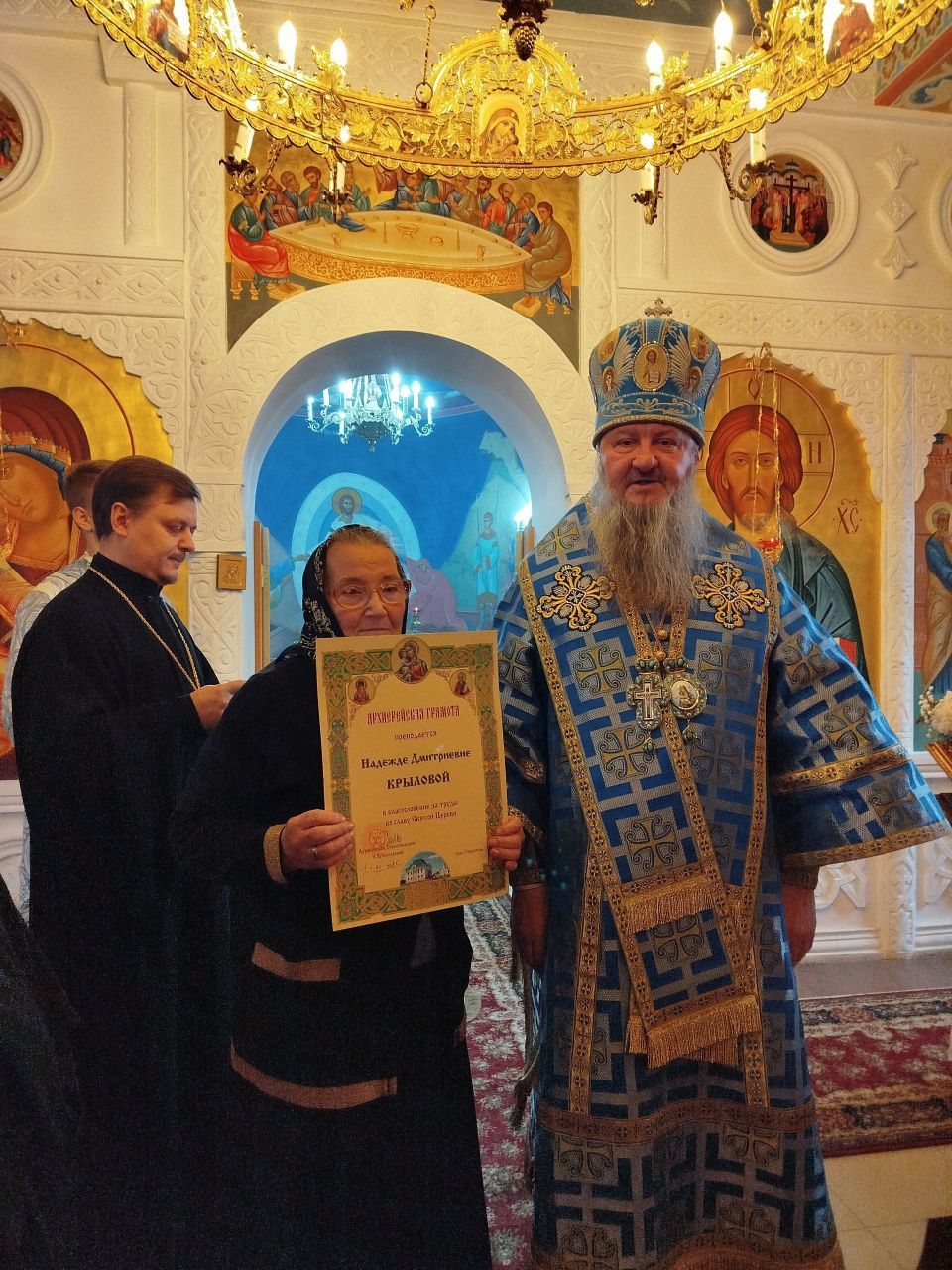 По случаю торжества Его Высокопреосвященство вручил ряду благотворителей и добрых помощников монастыря епархиальные награды – медаль Покрова Пресвятой Богородицы и благословенные Архиерейские грамоты.