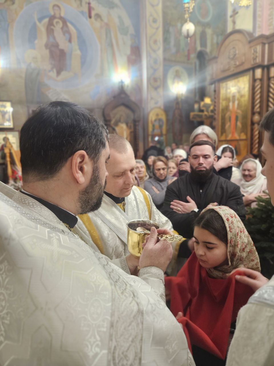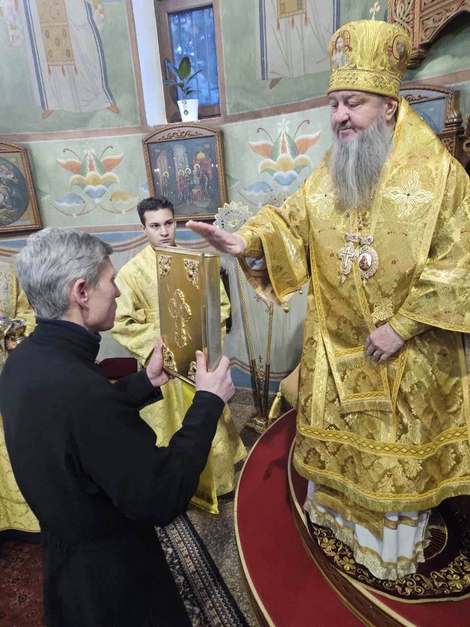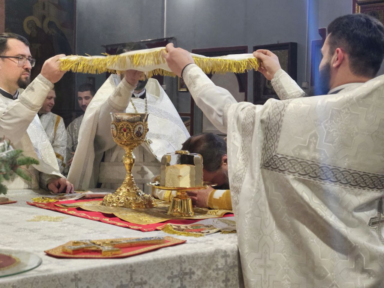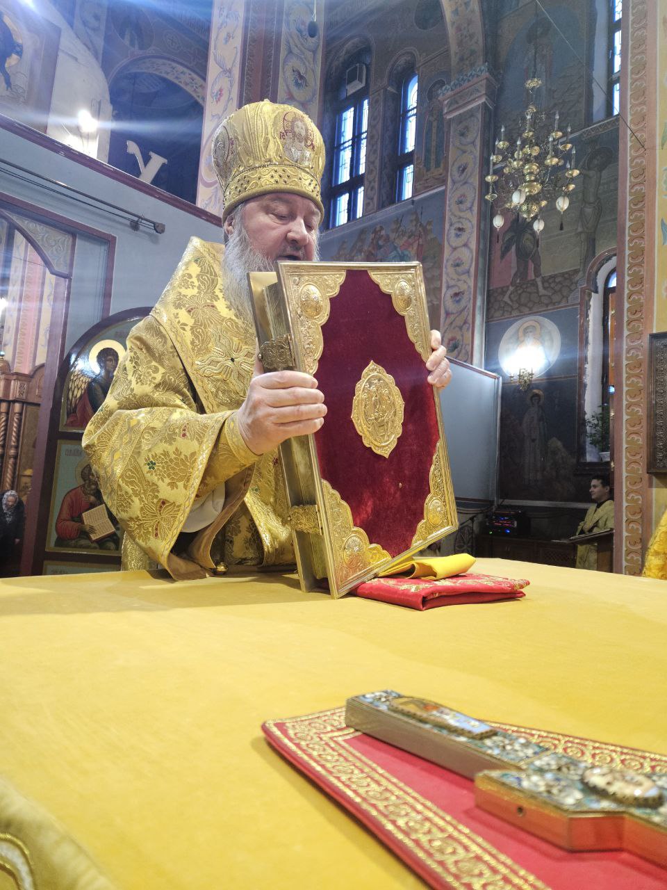 За богослужением Высокопреосвященнейшему Владыке настоятелю сослужили клирик прихода иеромонах Иоанн (Трайто) и клирик кафедрального собора Рождества Христова протодиакон Сергий Афтени. Совместная молитва духовенства и многочисленных прихожан стала духовным приготовлением к грядущему празднику Рождества Христова.
