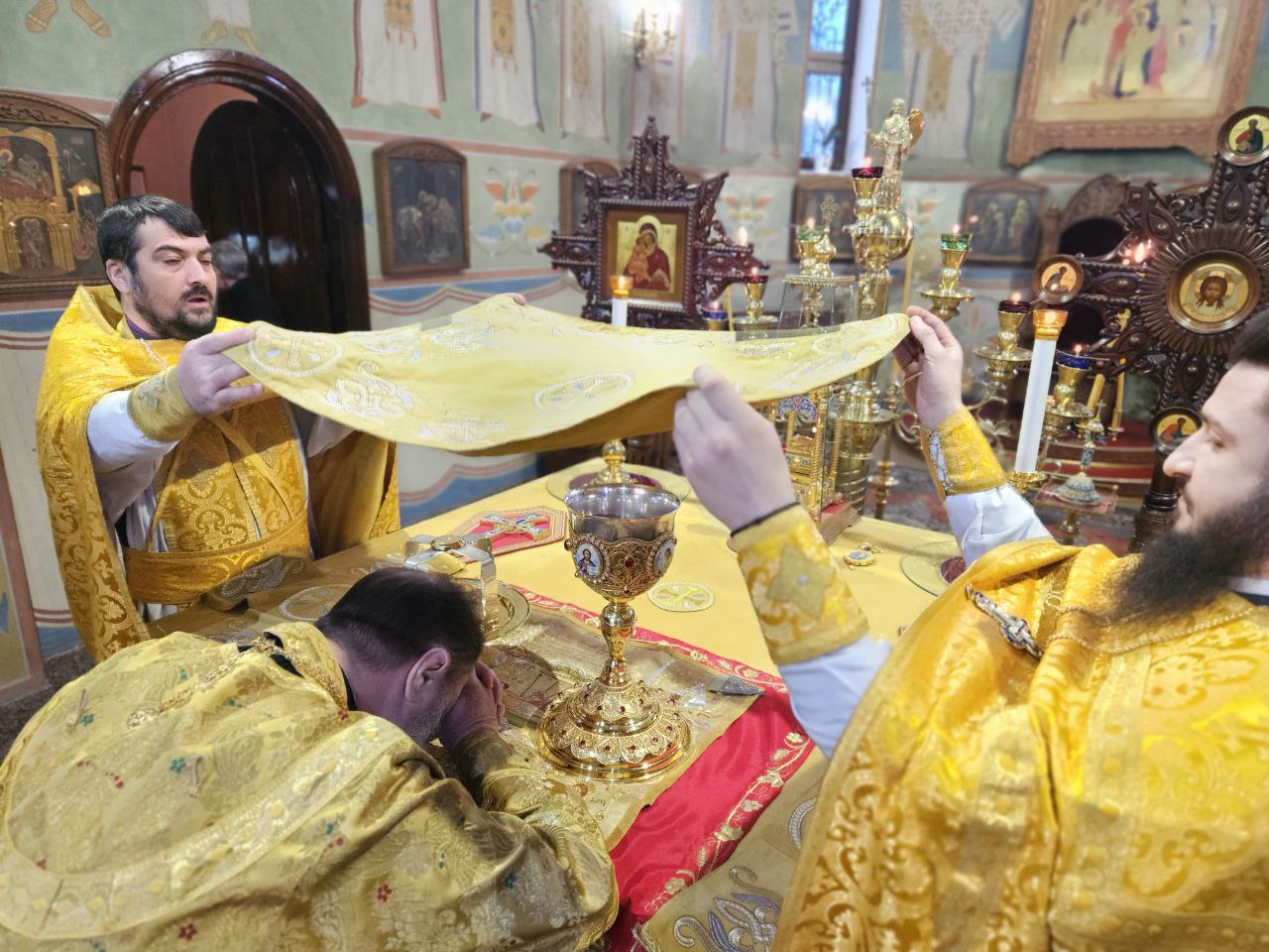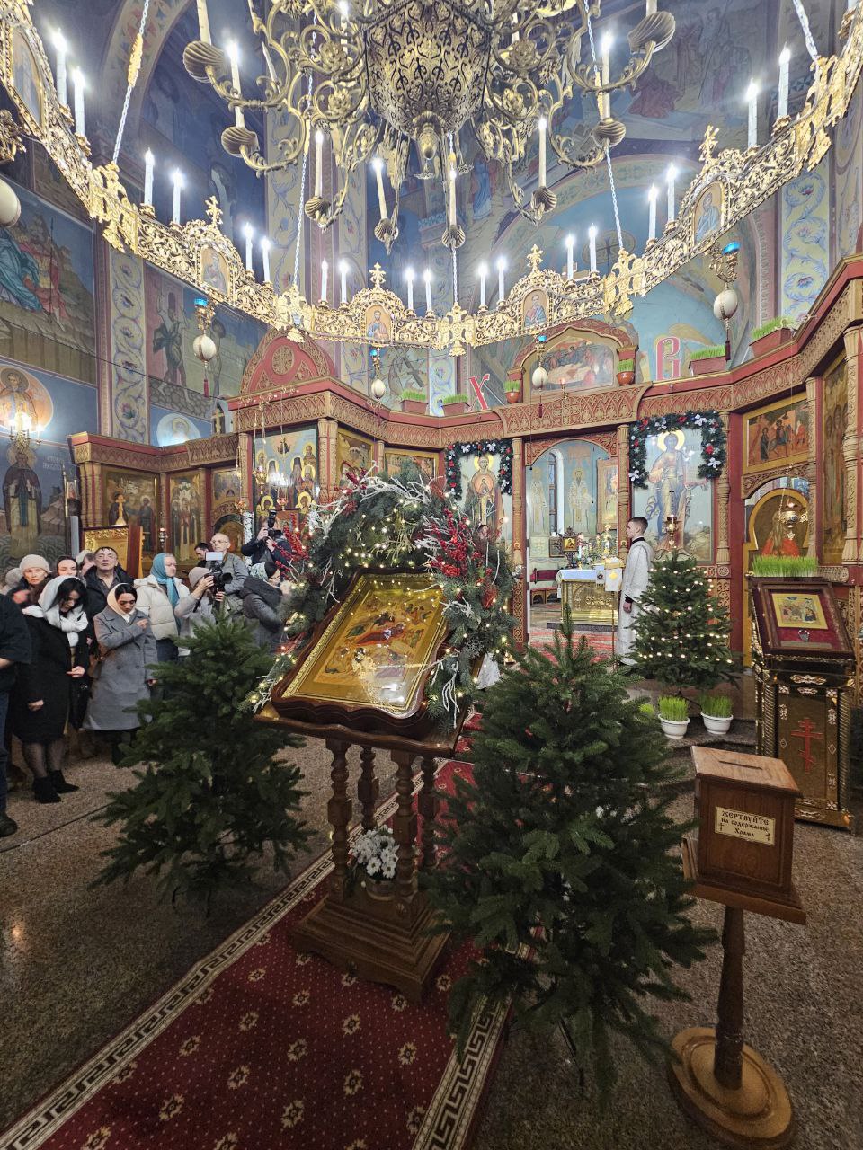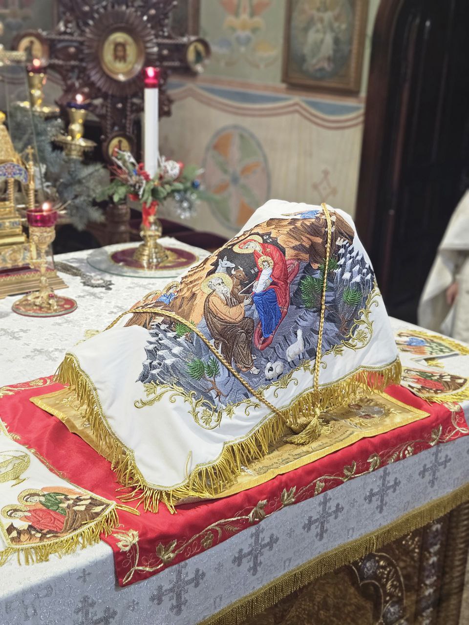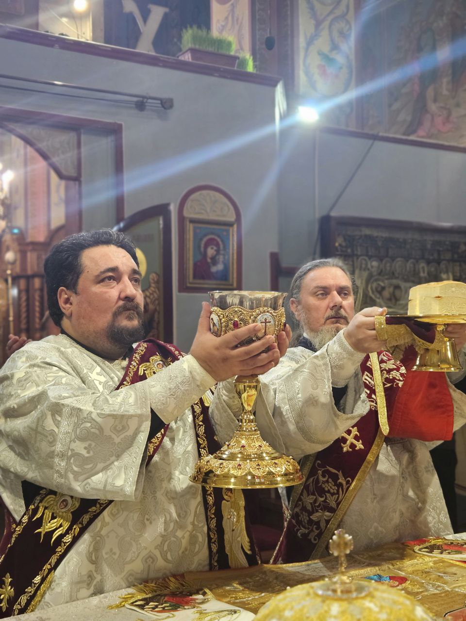 За богослужением Высокопреосвященнейшему Владыке настоятелю сослужили клирик прихода иеромонах Иоанн (Трайто) и клирик кафедрального собора Рождества Христова протодиакон Сергий Афтени. Совместная молитва духовенства и многочисленных прихожан стала духовным приготовлением к грядущему празднику Рождества Христова.