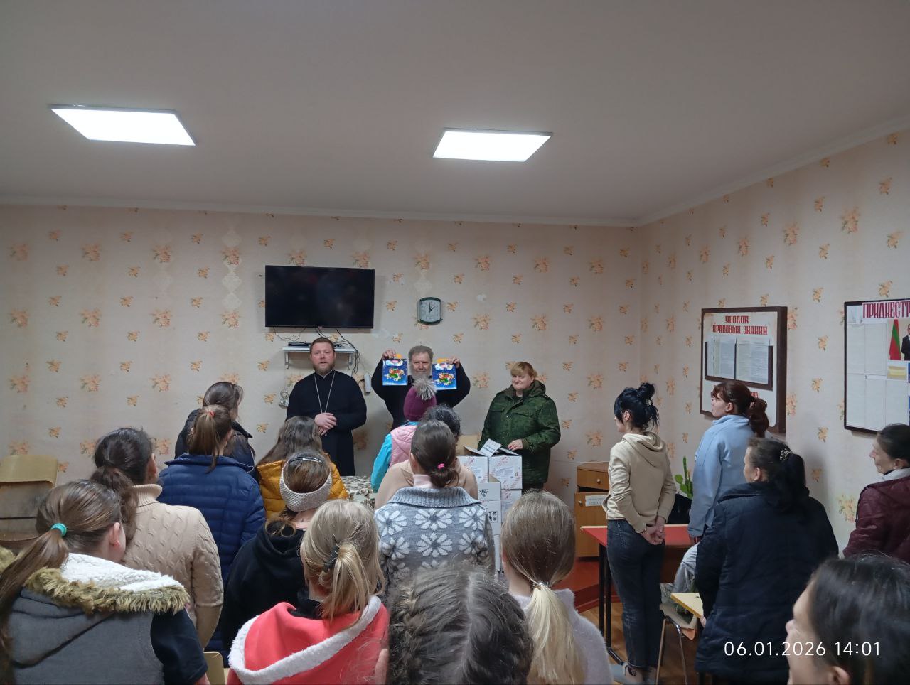 Священнослужители поздравили осуждённых женщин с приближающимся праздником Рождества Христова, передали слова пастырской поддержки и напомнили о духовном смысле грядущего торжества – пришествии в мир Спасителя, Который приходит к каждому человеку, независимо от жизненных обстоятельств.