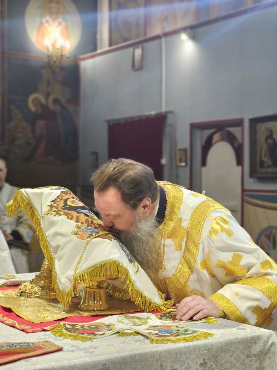 В завершение богослужения было совершено славление пред образом чудотворца святителя Петра, митрополита Киевского, Московского и всея Руси, которому архиепископ Савва прочёл молитву. Затем Владыка обратился к собравшимся на молитву со словом архипастырского поучения.