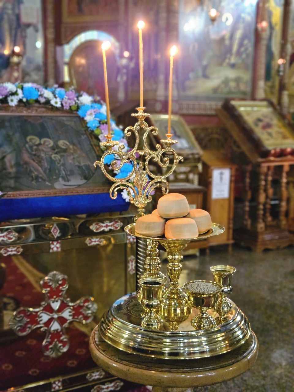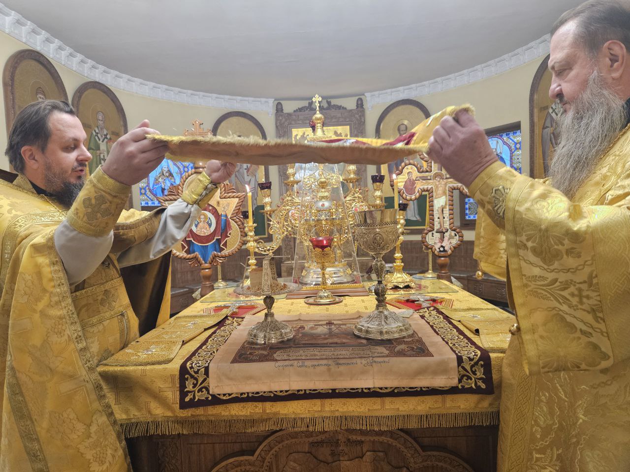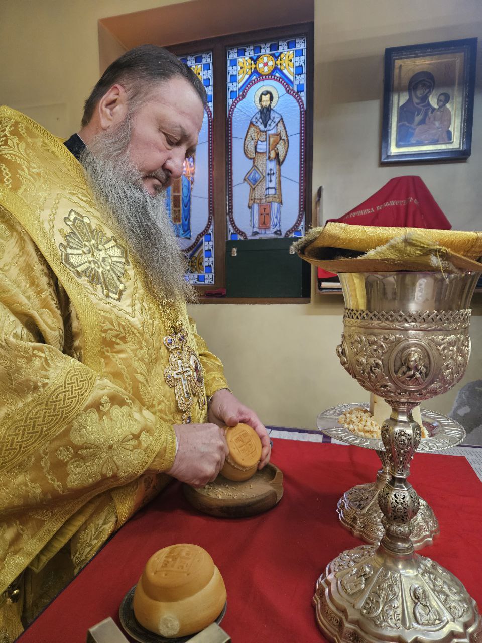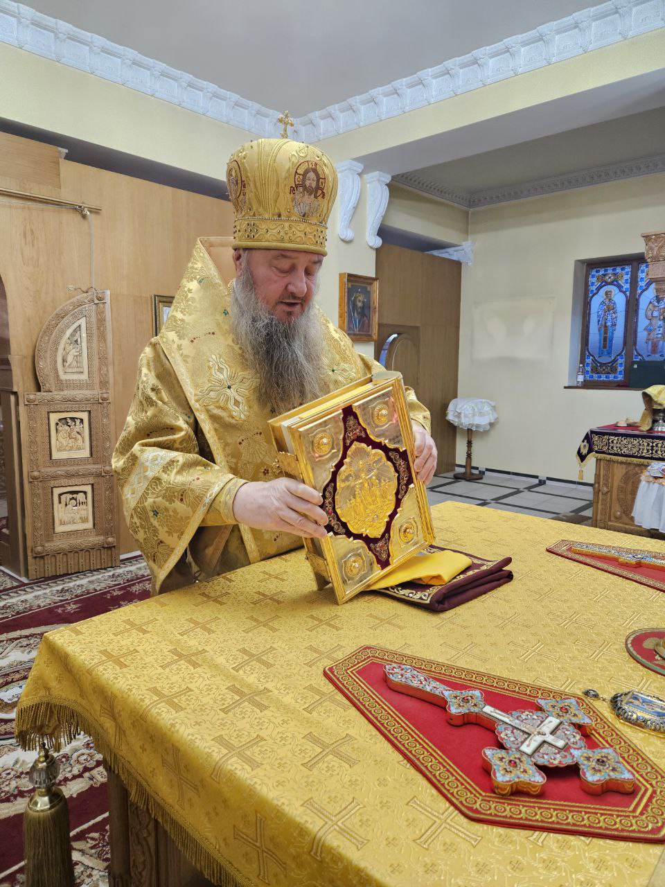 На полиелее Высокопреосвященнейшим Владыкой был прочитан положенный в дни памяти святителей отрывок из Евангелия от Иоанна (Ин. 10:1–9), после чего Архипастырь обратился к прихожанам, поздравив их с наступающим днём престольного праздника. Затем архиепископ Савва помазал святым елеем сослужившее духовенство и мирян.