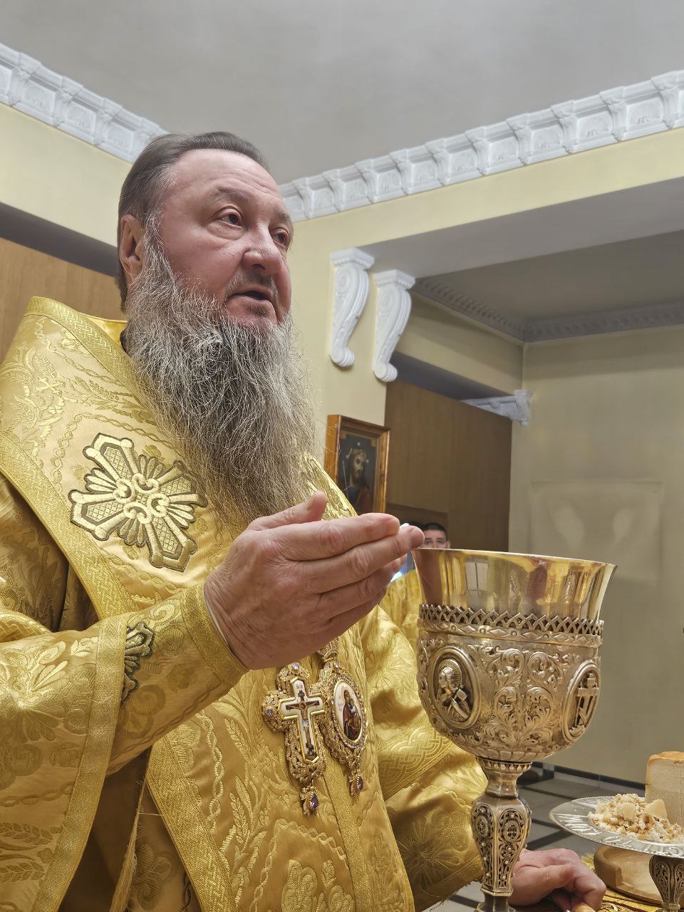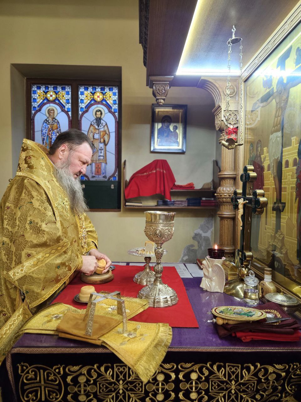 На полиелее Архипастырь прочёл воскресный отрывок из Евангелия от Марка (Мк. 16:9–20). Затем Владыка Савва обратился к молящимся с архипастырским словом. Его Высокопреосвященство поздравил причт и паству с наступающим воскресным днём и помазал клир и мирян освящённым елеем.