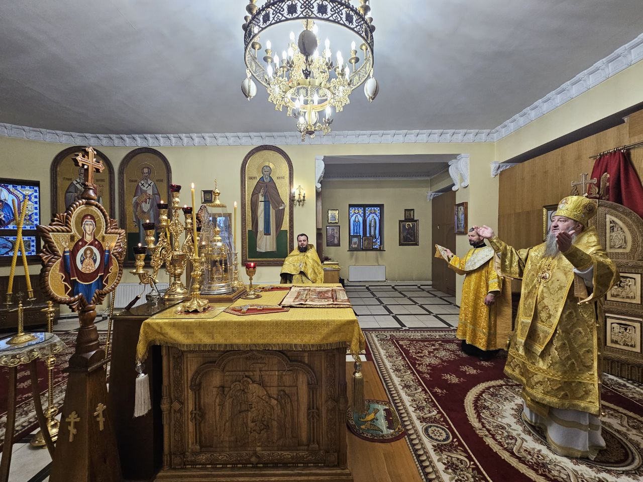 Высокопреосвященнейшему Владыке настоятелю сослужили клирик прихода иеромонах Иоанн (Трайто) и клирик кафедрального собора Рождества Христова диакон Геннадий Гнатюк.