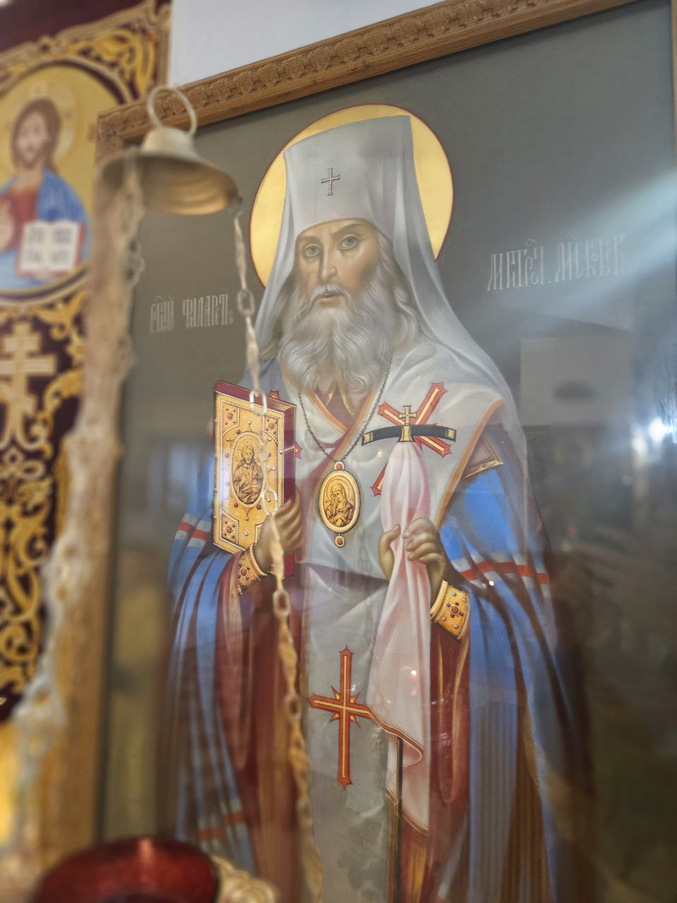В завершение богослужения было совершено славление пред образом ныне прославляемого святителя Филарета Московского. Правящий Архиерей прочёл молитву этому Божию угоднику, после чего, под пение величания святителю, поклонился его честному образу.